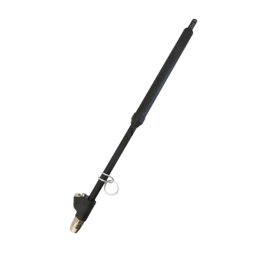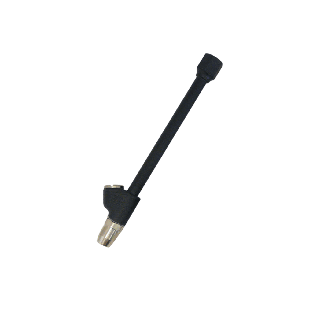 Durable air chuck featuring a 7″ length with locking lead, offering both straight and 30° reverse angle configurations. It comes in a normally-closed design with a sleek black finish.