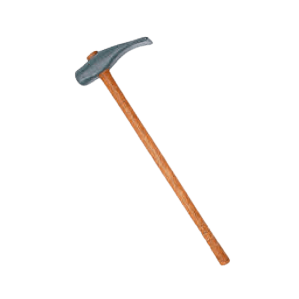 Heavy-duty hammer with a long wooden handle and steel head, designed for tire service applications like bead breaking and seating.